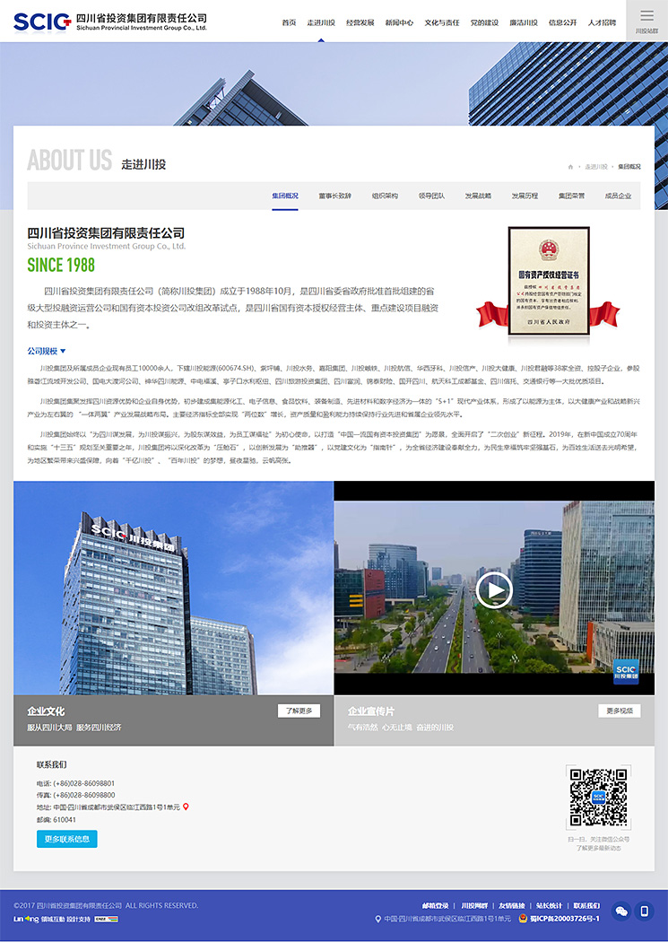 四川省投資集團(tuán)有限責(zé)任公司(簡稱川投集團(tuán))成立于1988年10月,是四川省委省政府批準(zhǔn)首批組建的省級大型投融資運營公司和國有資本投資公司改組改革試點,是四川省國有資本授權(quán)經(jīng)營主體、重點建設(shè)項目融資和投資主體之一。